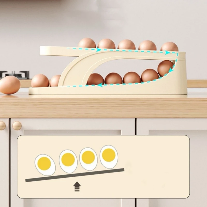 Suporte organizador apresenta um conveniente design alimentado por gravidade. Os ovos são dispensados por vez a partir de uma via inclinada. Retire os ovos da saída, e os ovos no interior irão rolar automaticamente para fora.
